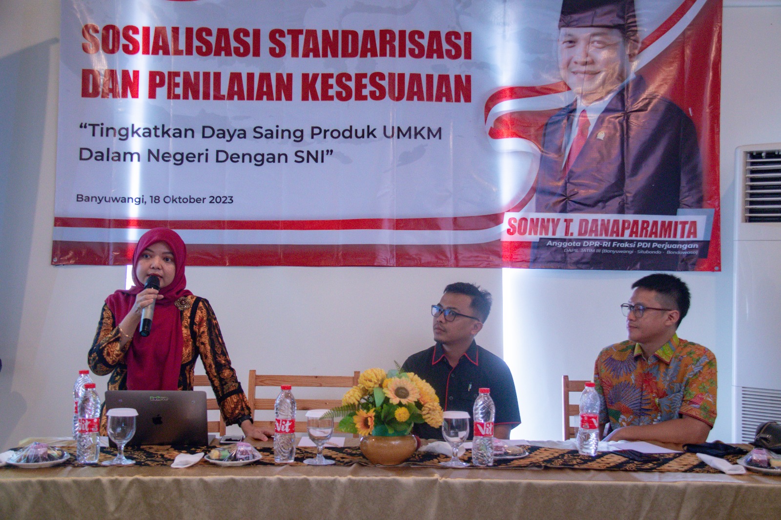 Sonny menyampaikan, para pelaku UMKM di kabupaten Banyuwangi harus memahami pentingnya sertifikat Standar Nasional Indonesia (SNI) agar dapat meningkatkan mutu, kualitas, dan daya saing produk UMKM. Selain itu untuk menciptakan kepercayaan konsumen, sehingga pelaku UMKM tidak perlu ragu dalam melakukan standardisasi produk, agar dapat segera merasakan manfaatnya.