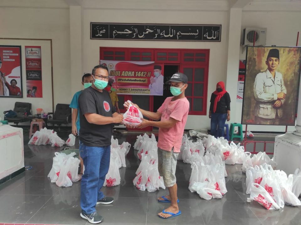 Anggota DPR RI Fraksi PDI Perjuangan, Sonny T Danaparamita, pada perayaan Idul Adha 1442 H, membagikan ratusan paket daging kurban, kepada masyarakat di Bondowoso.