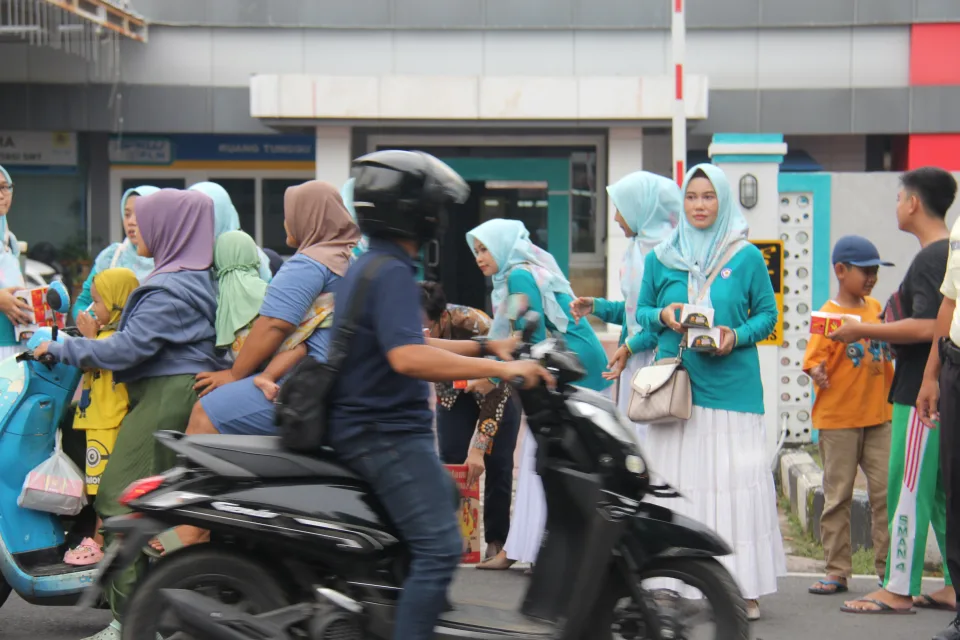 Srikandi dan PIKK PLN UP3 Madura menggelar aksi sosial dengan membagikan ratusan paket takjil kepada masyarakat di bulan suci Ramadhan. di depan kantor PLN UP3 Madura. Jumat sore.