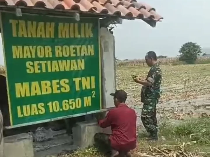 Sang Oknum tentara yang diketahui bernama Mayor Roetan Setiawan itu tiba-tiba memasang banner berisi tulisan klaim bahwa tanah persawahan tersebut adalah miliknya.