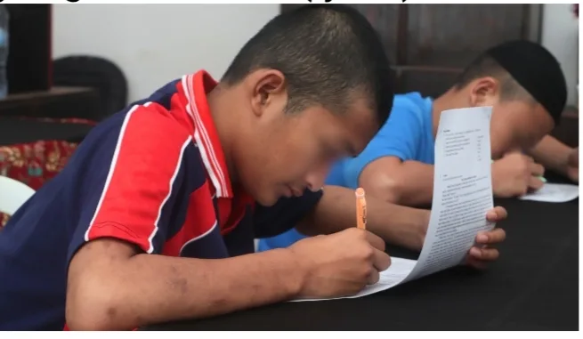 Selama ujian, anak binaan tampak serius dan fokus, menunjukkan motivasi tinggi untuk terus belajar.