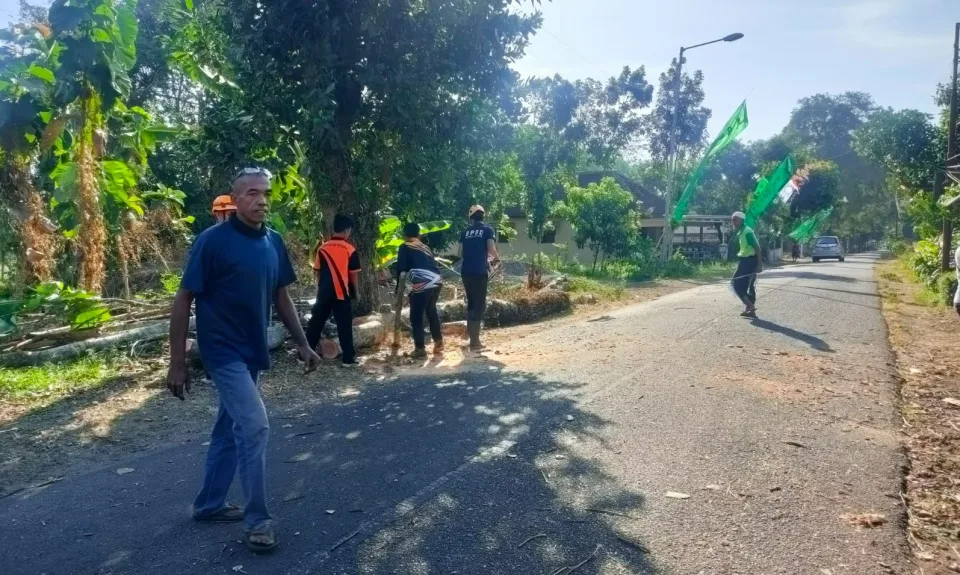 Badan Penanggulangan Bencana Daerah (BPBD) Kabupaten Bondowoso mengevakuasi pohon yang tumbang akibat hembusan angin kencang di Jalan Raya Pujer. Kamis, (11/7/2024) siang.