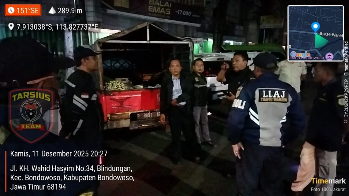 Tim Operasi Gabungan (Opsgab) yang terdiri dari Dinas Perhubungan (Dishub), Sat Lantas Polres Bonwoso, CPM, Satpol PP, serta perwakilan Kelurahan Blindungan dan Kelurahan Dabasah melakukan penertiban parkir bongkar muat sayur di Jalan Wahid Hasyim sekitar Pasar Induk. Pada Kamis malam (11//2025)