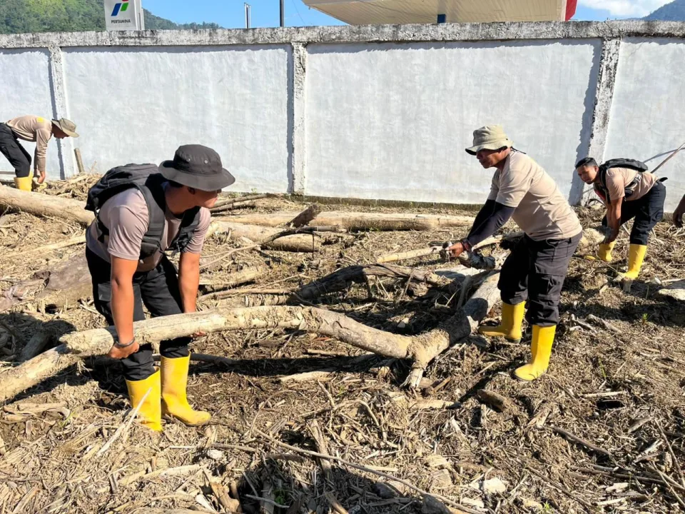 ”Kegiatan ini bertujuan untuk membersihkan material sisa banjir berupa lumpur, kayu, dan sampah yang menumpuk di bantaran sungai, guna memulihkan kondisi lingkungan serta mencegah terjadinya banjir susulan,” ujar Kombes Pol. Erdi A. Chaniago dalam keterangannya.