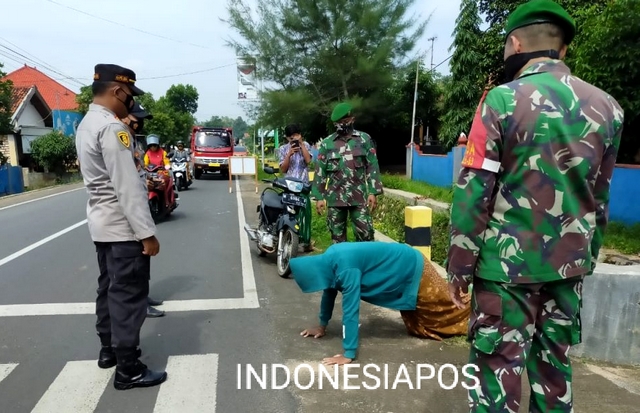 Sejumlah pengendara yang tidak menggunakan masker di hentikan oleh petugas, dan kemudian diberikan sanksi berupa teguran lisan, Push up, dan menyanyikan lagu kebangsaan.