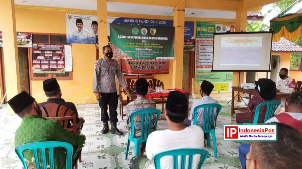 Bertempat di Balai Desa Rangperang Daya Masyarakat serta perangkat Desa Rangperang Daya mendapatkan sosialisasi tentang bahaya penyalahgunaan narkoba dari anggota Polsek Proppo pada Selasa (21/09/2021).