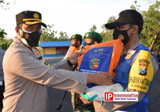 Polres Pamekasan menggelar apel bersama anggota Kodim 0826 dalam rangka pelepasan pendstribusian bantuan sosial Kapolri kepada masyarakat di Kabupaten Pamekasan.