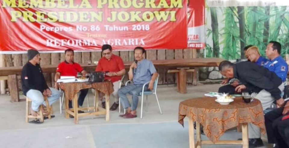 Tim Panca Gatra Indonesia (TPGI) yang mendampingi sembilan kelompok masyarakat (pokmas) di Kabupaten Blitar menggelar sarasehan akbar, mebahas dan membela program Presiden Jokowi, Perpres nomor 86 tahun 2018 tentang Reforma Agraria, di rumah makan Kelurahan Tlumpu Kota Blitar. Sabtu, (29/07/2023).