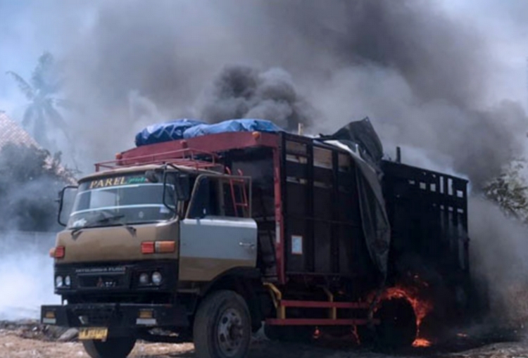 Informasi yang di himpun Indonesia Ppos, Api pertama kali tampak membakar bagian roda sebelah kanan truk. Kejadian tersebut tak ada yang mengetahui, sehingga api merembet membakar bagian belakang truk tersebut.