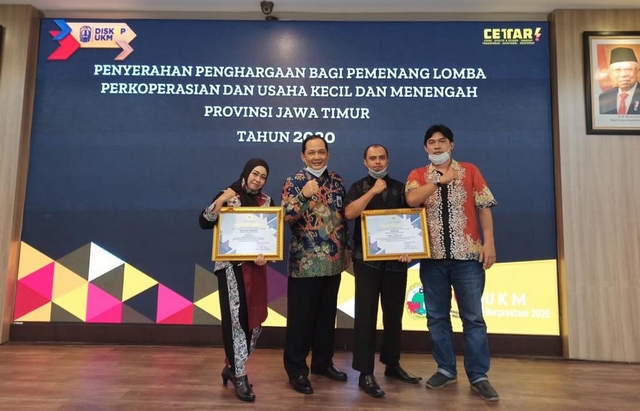 Dua pelaku Usaha Kecil Menengah (UKM) asal Bondowoso mendapat penghargaan dari Gubernur Jawa Timur, Khofifah Indarparawansa, pada acara UKM Millienialpreunership Jawa Timur tahun 2020, di kantor Dinas Koperasi dan UKM Surabaya. Jum’at, (9/10/2020).