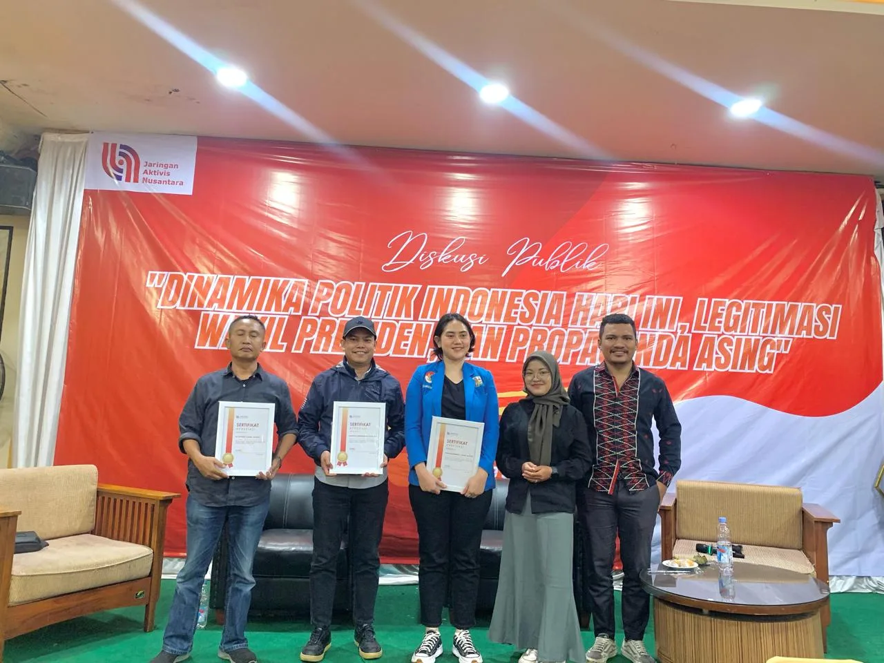 Jaringan Aktivis Nusantara ( JAIN) di zaman Resto menggelar diskusi publik berlangsung di Jakarta pada Minggu (29/6/2025). Diskusi publik yang bertajuk, “Dinamika Politik Indonesia Hari Ini, Legitimasi Wakil Presiden, dan Propaganda Asing”.