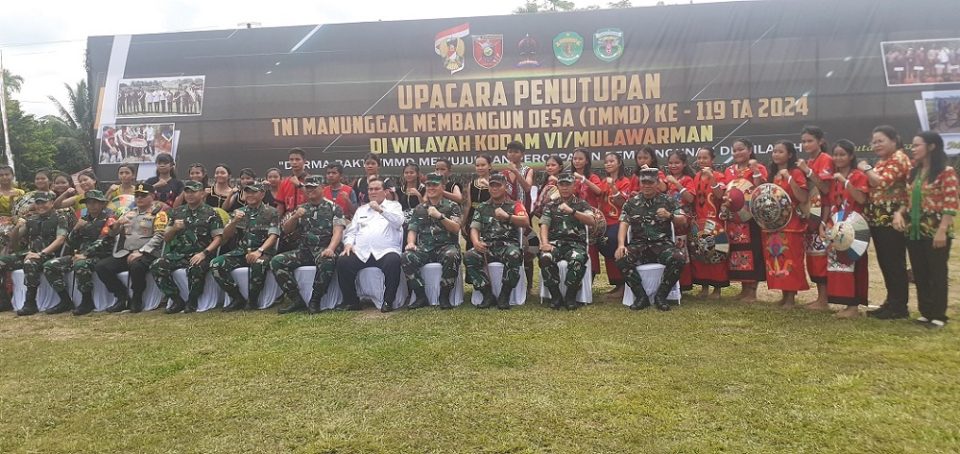 Wakil Kepala Staf Angkatan Darat (Wakasad) Mayjen TNI Tanyo Budi Revita,S.Sos didampingi Pangdam VI/Mlw Mayjen TNI Tri Budi Utomo SE, Brigjen TNI Taufiq Shobri M.Han (Waaster 2 Kasad Bid Tahwil) dan Brigjen TNI Irnando AB Sinaga (Waasops Kasad), secara resmi menutup TMMD ke – 119 di Kabupaten Kutai Barat.