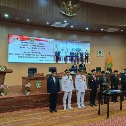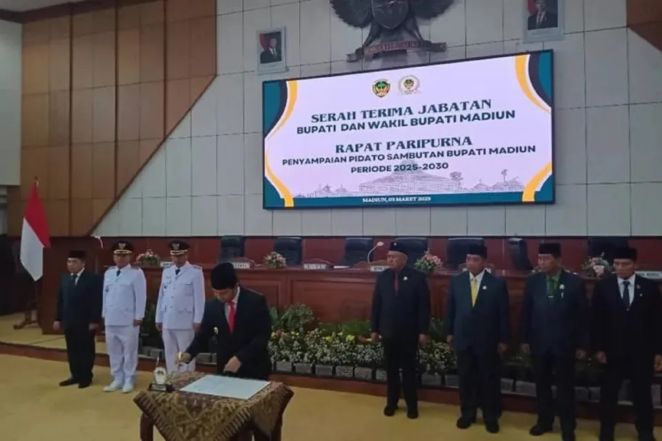 DPRD Kabupaten Madiun menggelar rapat paripurna serah terima jabatan (sertijab) Bupati dan Wakil Bupati serta penyampaian sambutan Bupati Madiun periode 2025-2030, di ruang rapat DPRD Kabupaten Madiun, Senin.