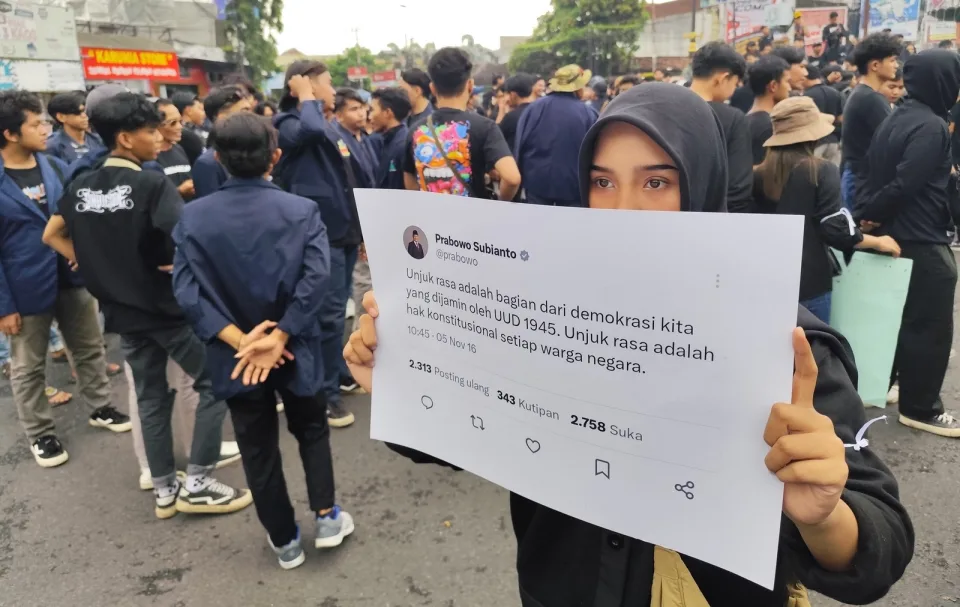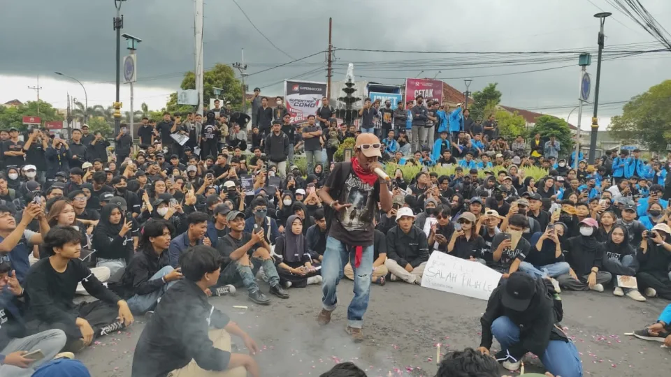 Ditengah situasi negara yang sedang mengalami krisis kepercayaan atas kebijakan pemerintah yang tidak pro rakyat, ratusan mahasiswa dan sejumlah elemen masyarakat melakukan aksi di gedung DPRD Jember , Jumat (21/2/2025). Aksi sempat ditemui sejumlah anggota DPRD Jember.