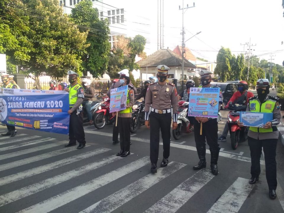Selain membagikan masker, juga memberikan himbauan kepada pengguna jalan untuk tetap mematuhi peraturan lalu lintas juga membagikan nasi kotak dan sembako kepada masyarakat.
