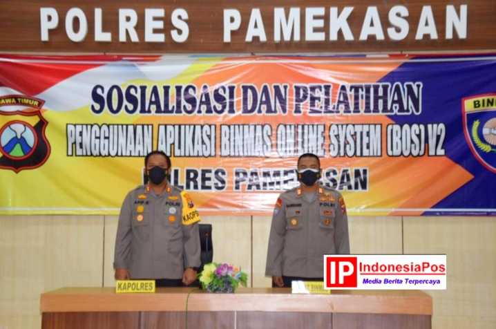Dalam rangka mewujudkan program prioritas Kapolri di bidang peningkatan pelayanan publik yang lebih mudah bagi masyarakat dan berbasis TI, Polres Pamekasan melaksanakan kegiatan sosialisasi dan pelatihan aplikasi Binmas Online Sistem (BOS) di Gedung Bhayangkara. Jum’at (30/4/2021) pagi.
